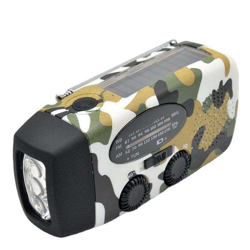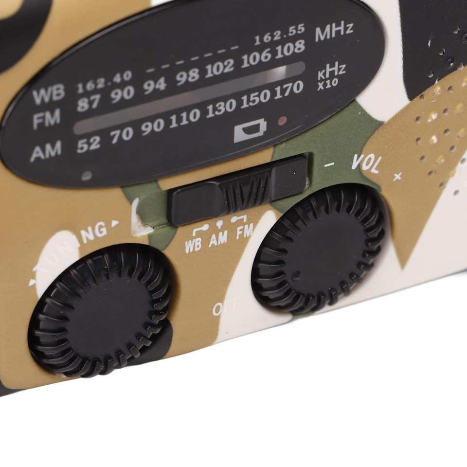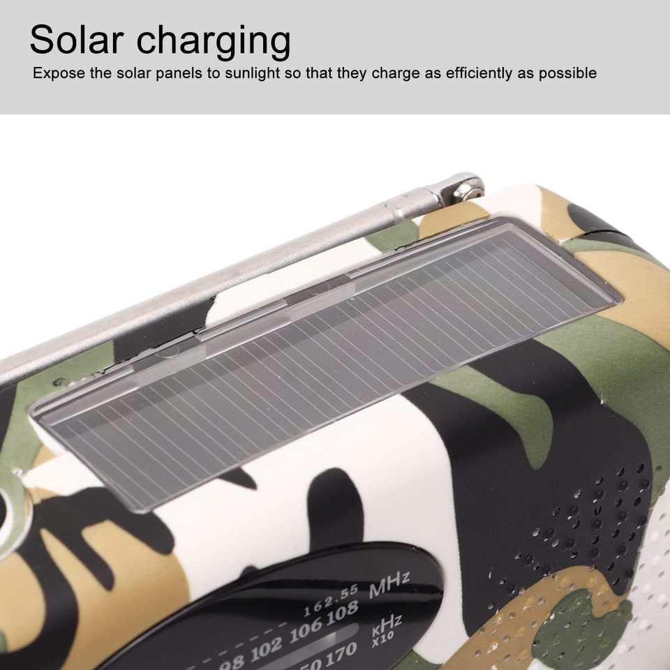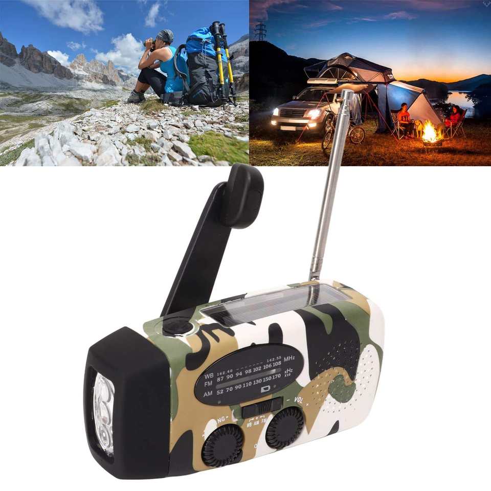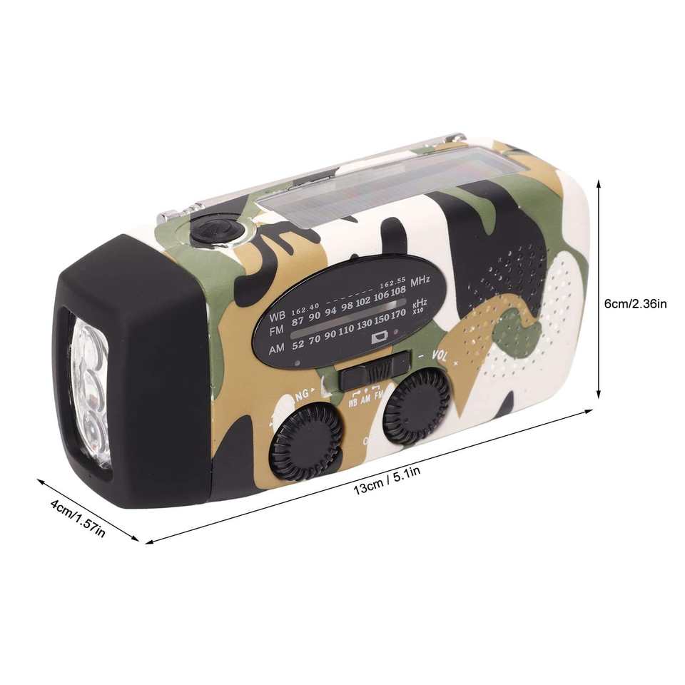 Radio Solar de Manivela AM FM con Banco de Energía de 2000mAh, Linterna LED, Resistente al Agua IPX3, Plástico ABS, Radio Portátil para Exteriores
