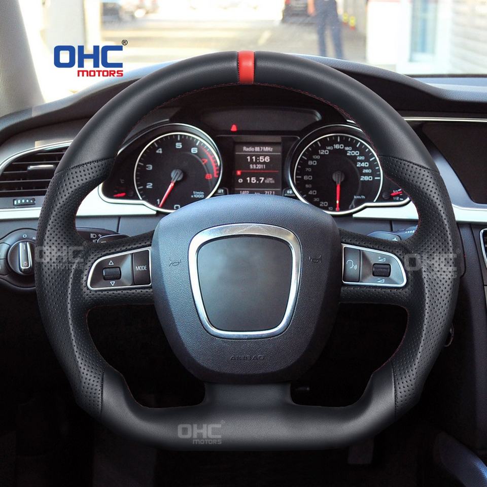 Volante de cuero cosido a mano de fábrica para Volante Audi A4 B7 A3 8P Q5 Q7 A7 A5 volantes 2012 2008 2007 OHC MOTORS