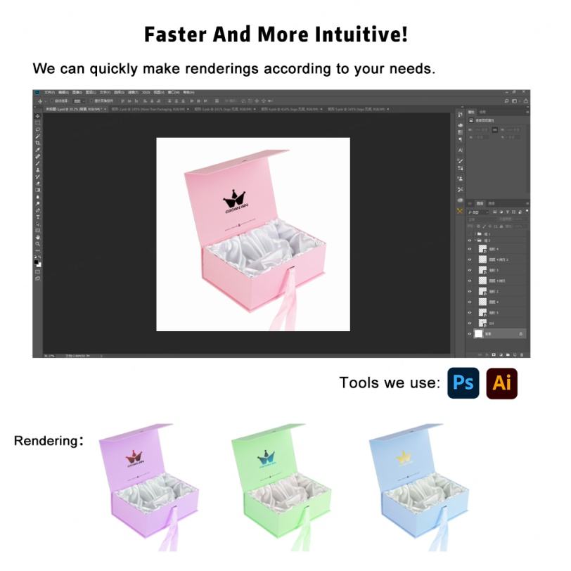 Manejo de la impresión:Laminación mate, Barnizado, Estampado, Relieve, Laminación brillante, Revestimiento UV, Desaparición, Lámina de oro, Cinta, EVA, PET VAC, bandeja de papel o esponja