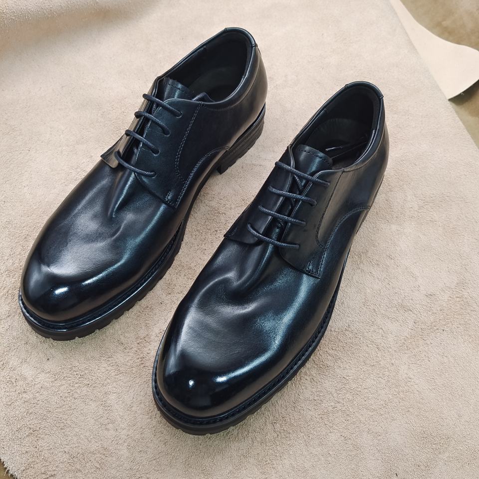 Zapatos de Hombre Hechos a Mano en Fábrica, con Punta Cuadrada, de Piel de Caballo Lavada, con Cordones, Estilo Derby, Suela Gruesa Antideslizante, Formales y Casuales de Cuero