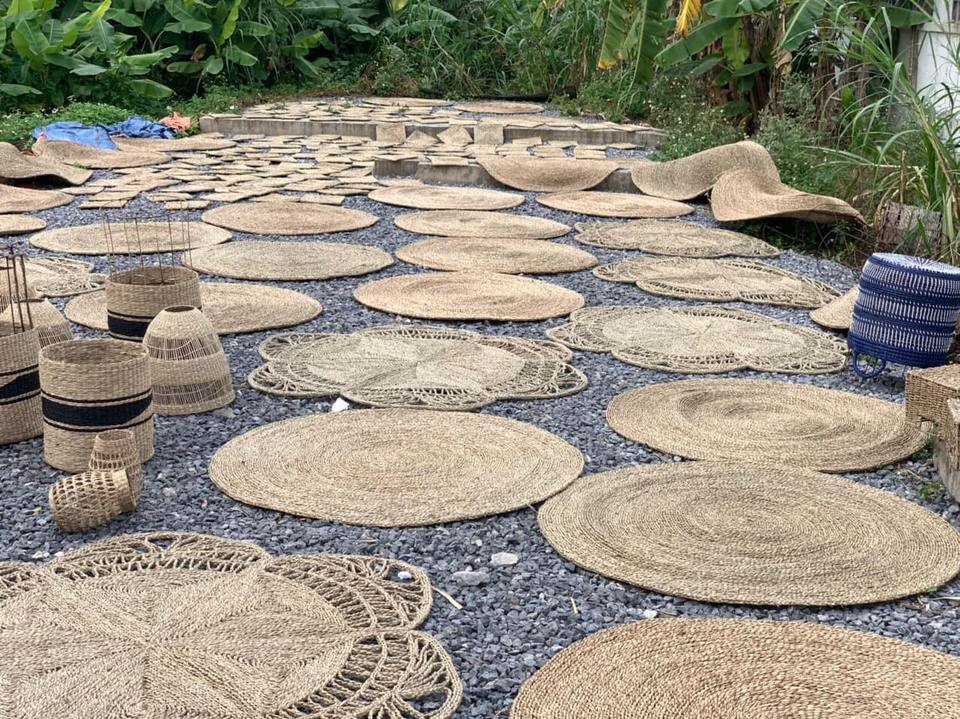 Manteles individuales de ratán trenzado de paja tejida redonda con aislamiento térmico de fábrica, manteles individuales de jacinto de agua nativo hechos a mano
