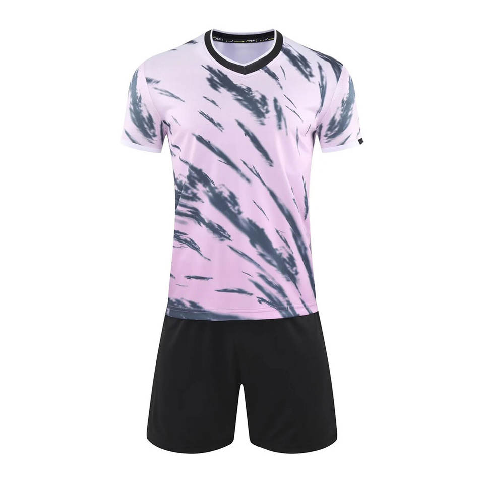Uniforme de fútbol de equipo de manga corta con cuello en V de secado rápido transpirable de alta calidad de fábrica 100% poliéster Club entrenamiento todo