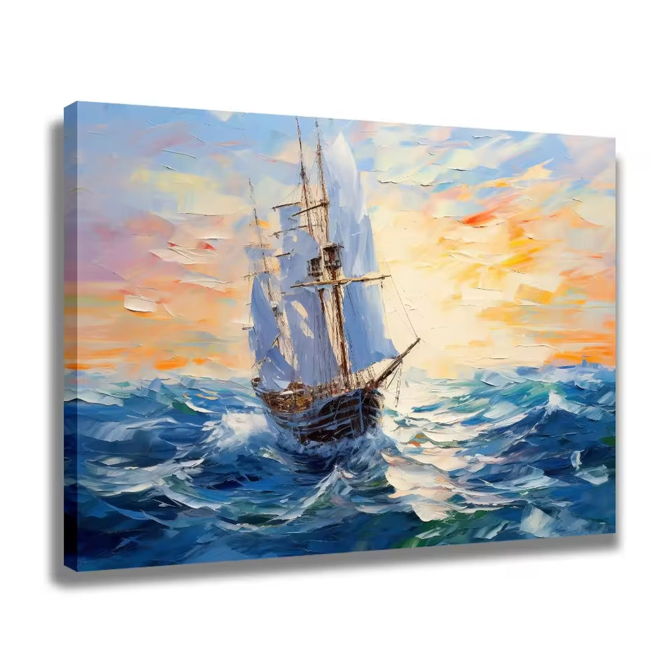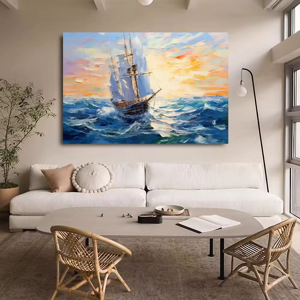 Fábrica de alta calidad personalizada 100% pintado a mano decoración del hogar paisaje pared arte hecho a mano barco lienzo ilustraciones pintura al óleo personalizable
