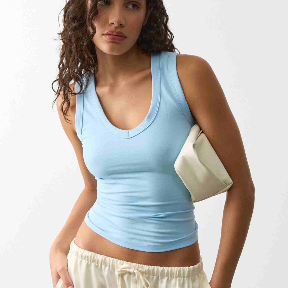 Camiseta sin Mangas de Jersey 100% Algodón, Color Sólido, Personalizada, de Alta Calidad, Cuello Redondo, Ajustada, Sexy, para Mujer