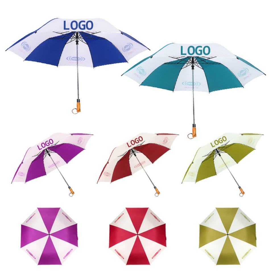 Paraguas Promocional de Alta Gama con Doble Capa y Logotipo Personalizado, Diseño Color Block, Mango de Madera, Apertura y Cierre Manual
