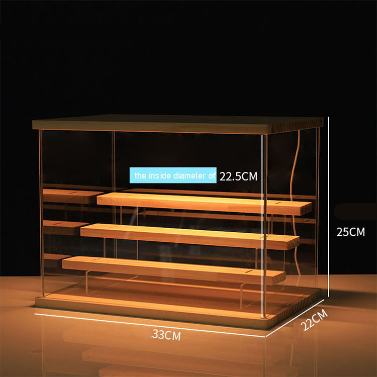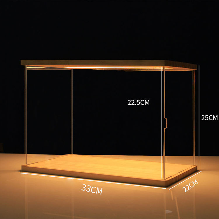 Soporte de exhibición de almacenamiento acrílico a prueba de polvo de alta calidad de fábrica, caja de mano, estante, caja de exhibición de luz transparente