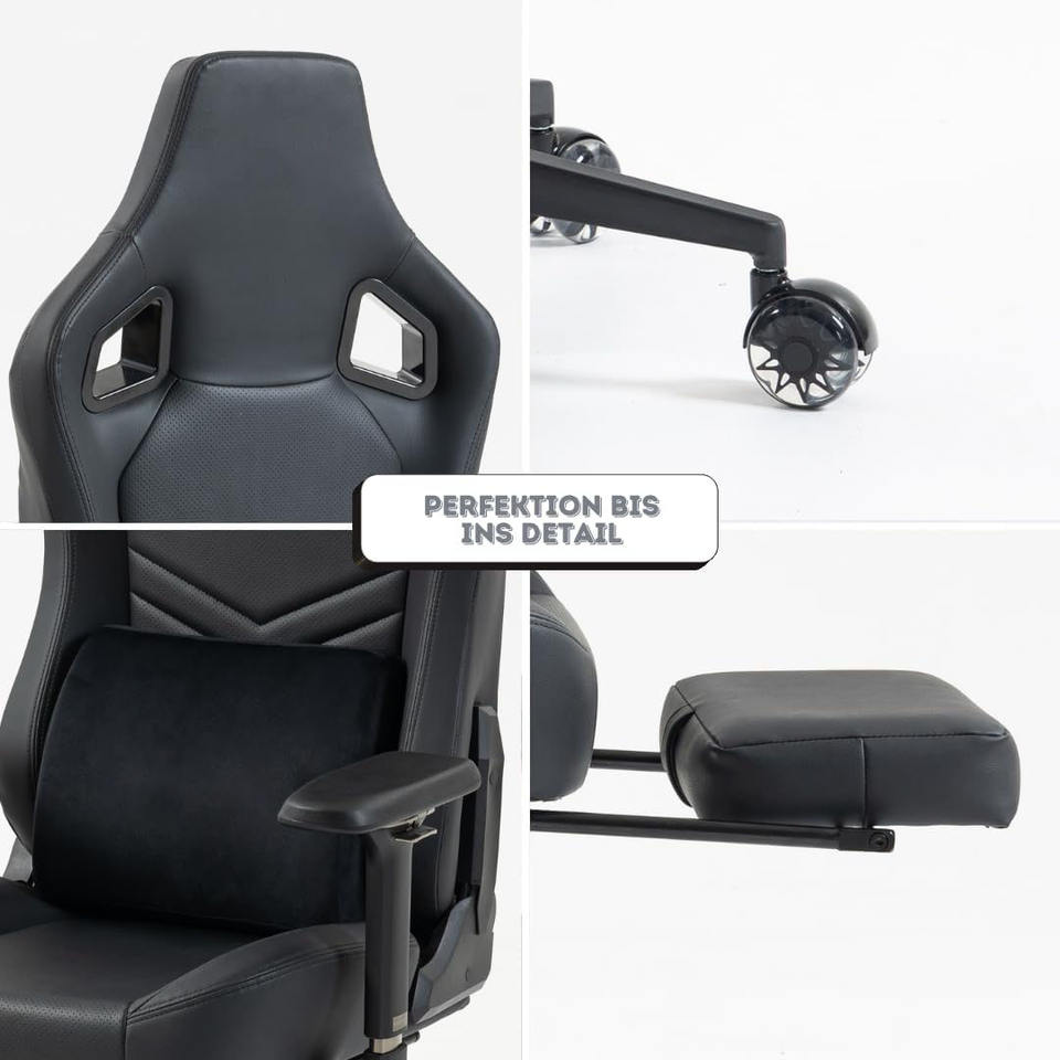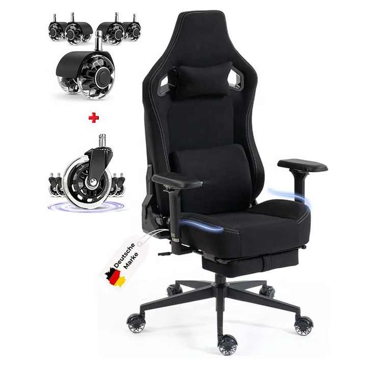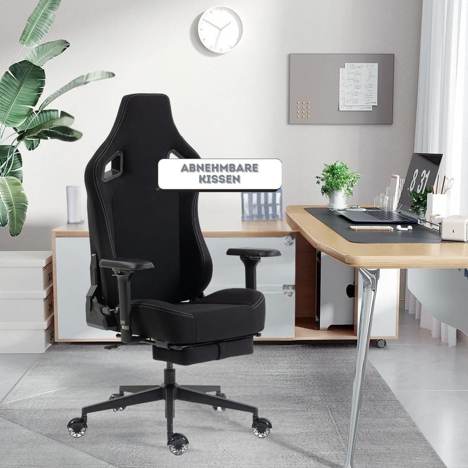 Silla de Juego para Computadora en Oferta, Silla Ergonómica para Videojuegos y Oficina con Reposapiés, Tapizada en Tela Negra