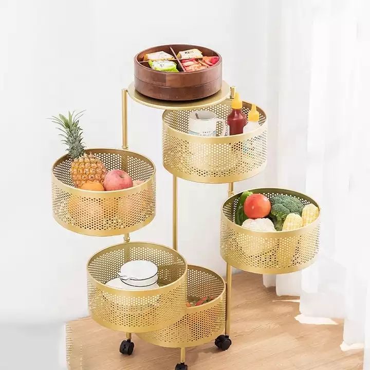 Estante Giratorio de Acero Inoxidable para Almacenamiento en la Cocina, 3/4/5 Niveles, para Frutas o Verduras, Venta Directa de Fábrica