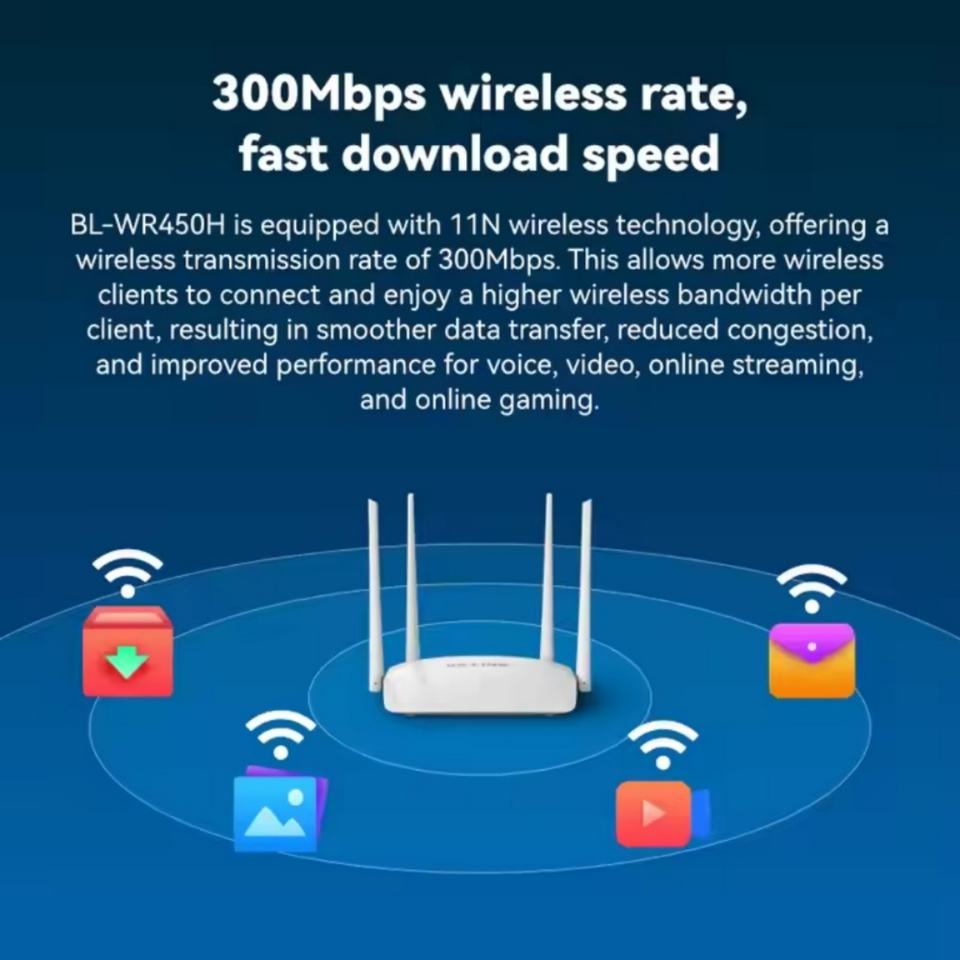 Router Inalámbrico en Oferta de Fábrica BL-WR450H WIFI 4 2.4G WIFI 1 WAN 2 LAN Router Doméstico