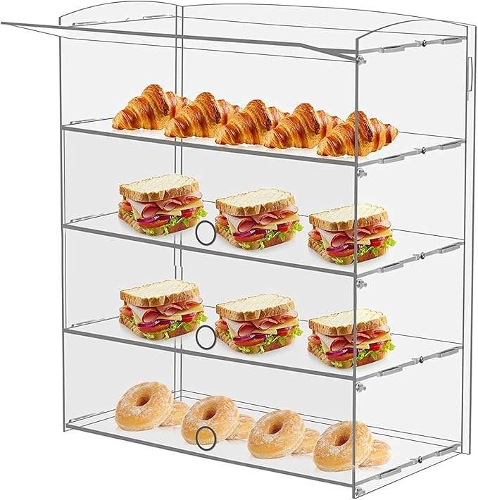 Venta caliente de fábrica Rectángulo 4 niveles Claro Acrílico personalizado Postre Venta al por menor Vitrinas de mostrador
