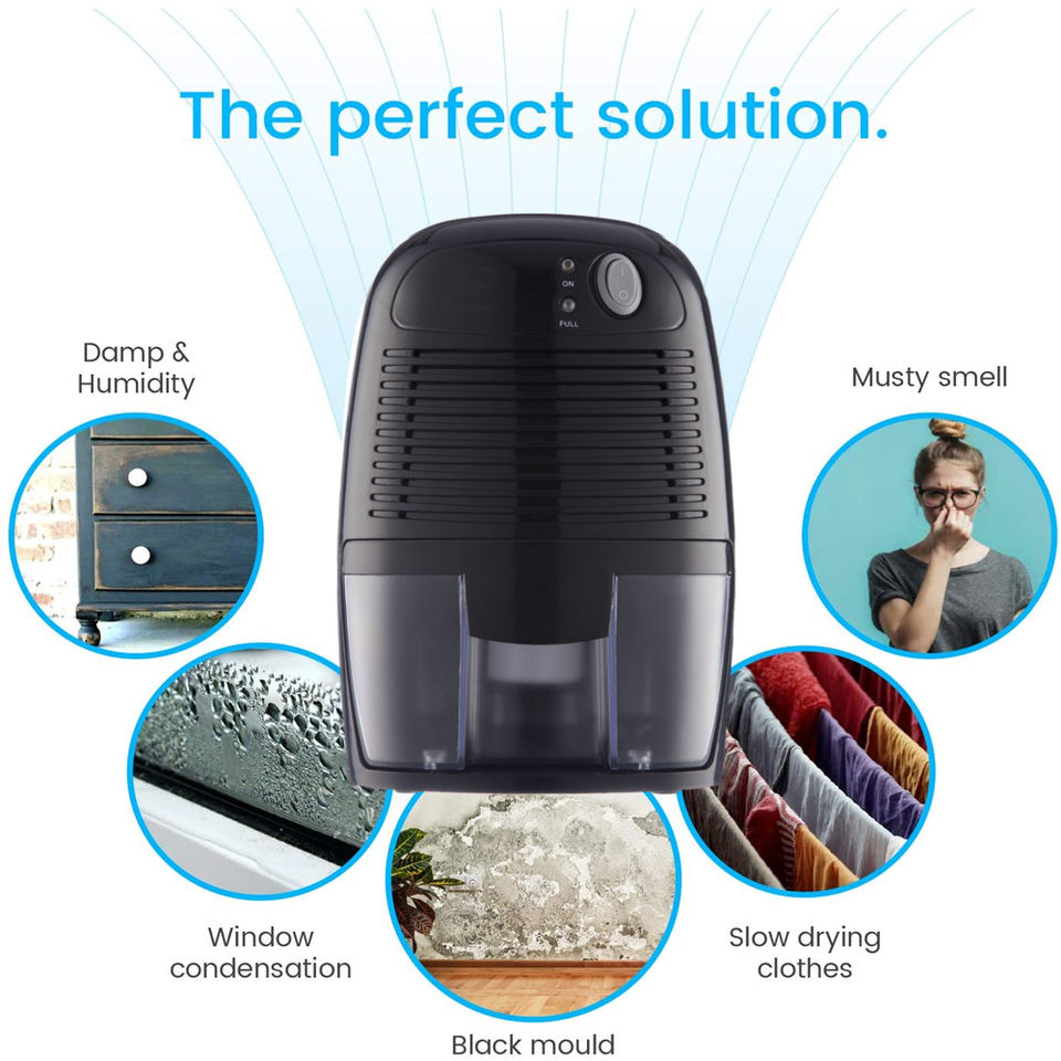 Deshumidificador de aire 500ml para humedad, moho, humedad, portátil y ultra silencioso para el Hogar, baño, etc. [Deshumidificador de clase energética A +++