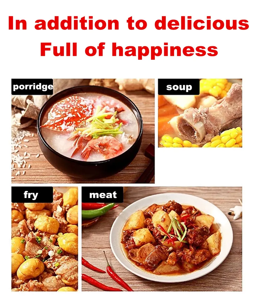 Guisado de sopa, Puchero, Limpiar a vapor, Cocina de gachas de avena, Guisado de leche, Ebullición de agua, Freír, Ajuste de la temperatura, Guisado a fuego medio, Intense fuegoFunción