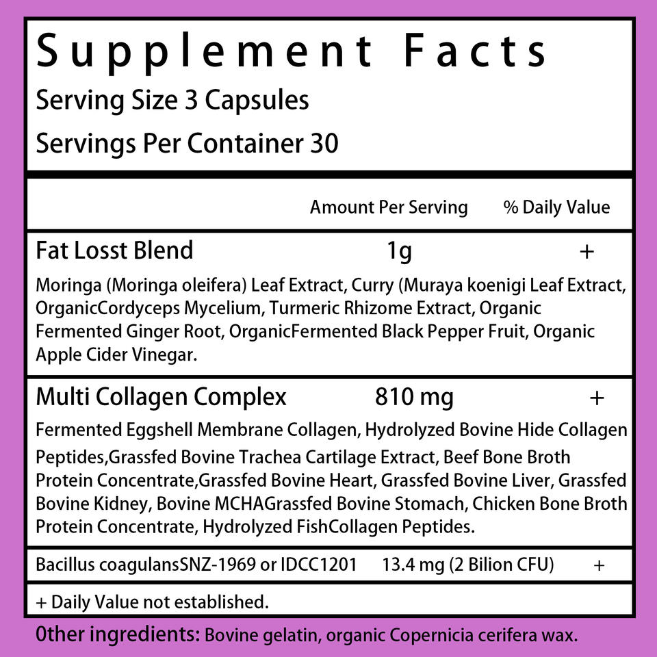 Mezcla de grasa Losst, Complejo Multi Colágeno, Extracto de hoja de curry, Extracto de hoja de Moringa, Extracto de rizoma de cúrcumaIngrediente principal