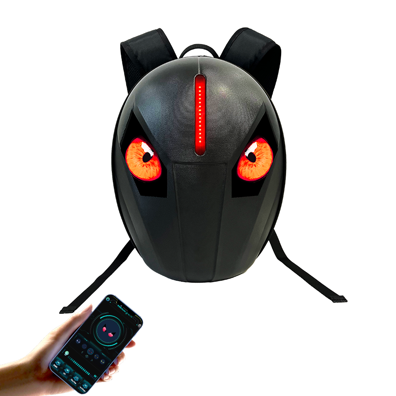 Venta caliente de fábrica de la motocicleta LED Knight Bag impermeable Hard Shell motocicleta bolsa para hombres DIY Display Eyes LED mochila