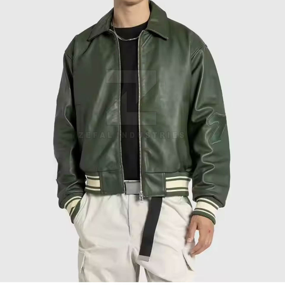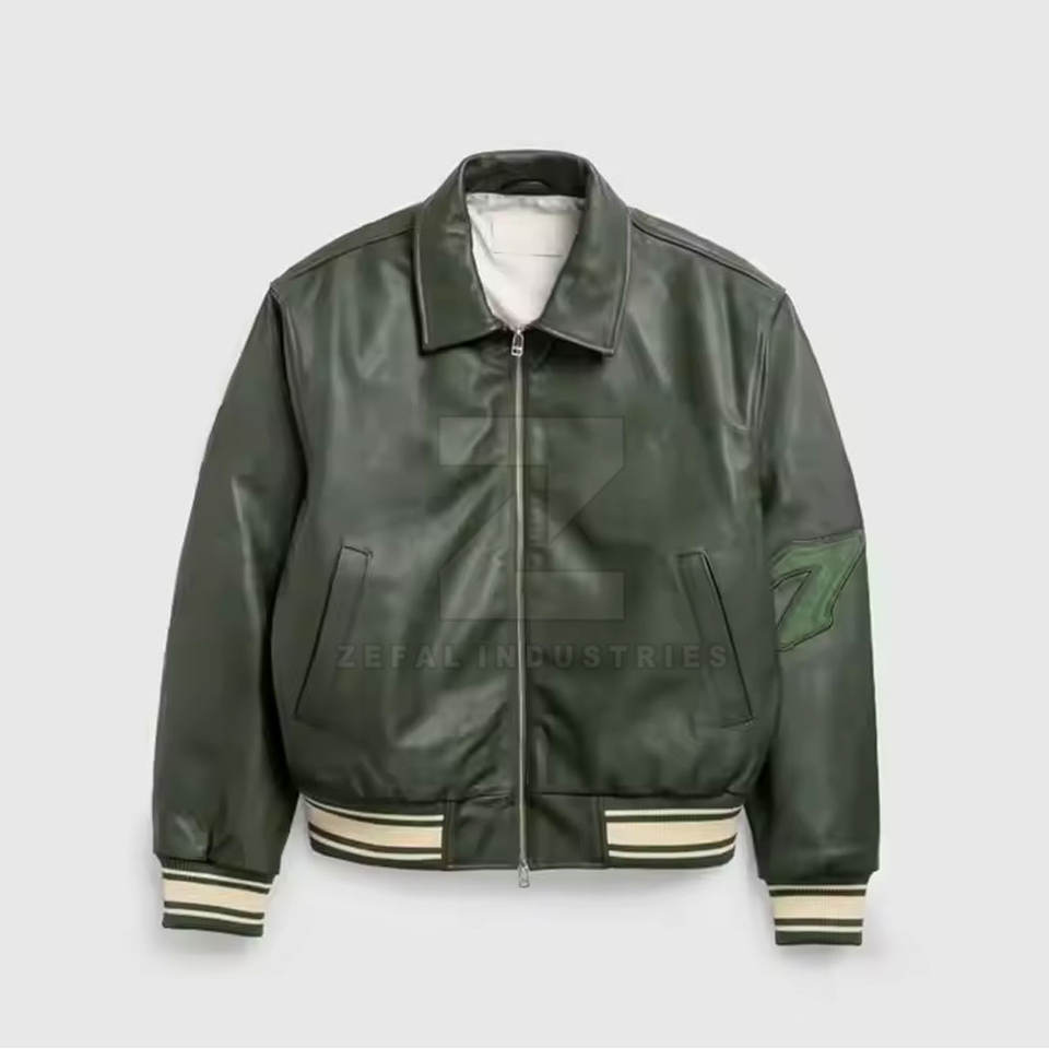 Chaqueta de Cuero para Hombre, Estilo Bomber, para Invierno, con Cuello Alto y Logotipo Frontal, Talla Grande, Impermeable y Resistente al Viento, Fabricada en Fábrica