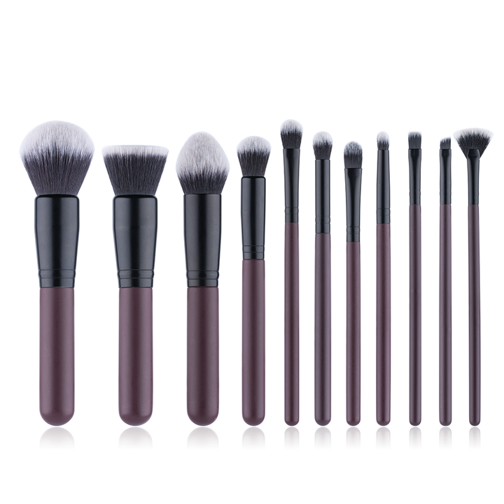 Juego de 11 brochas de maquillaje color rojo vino.