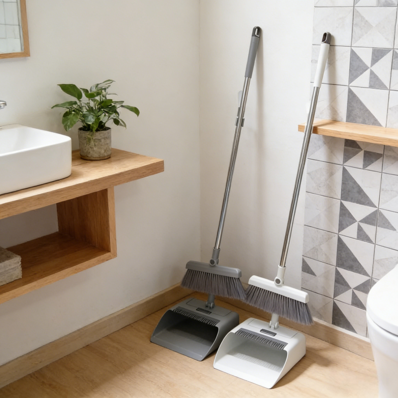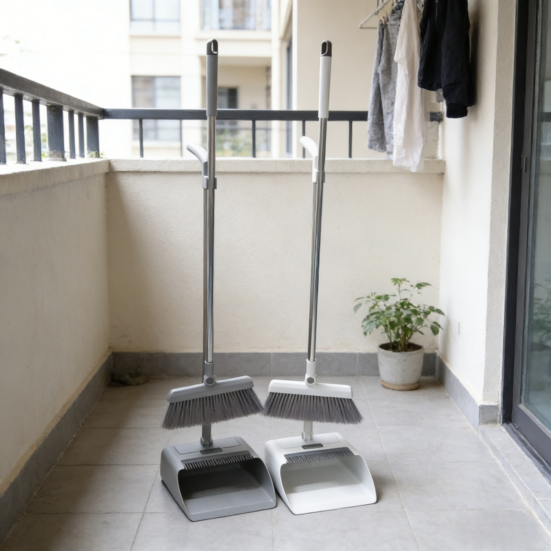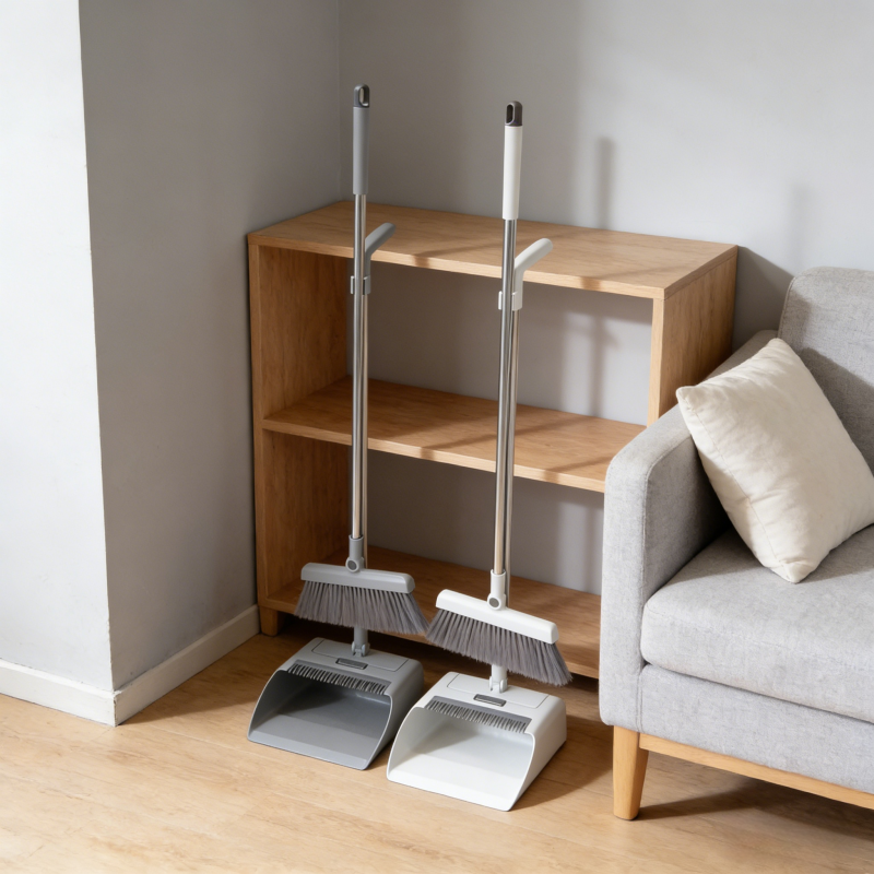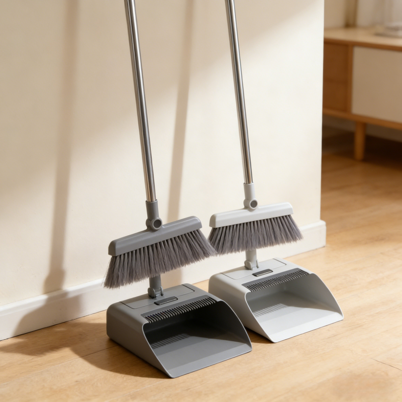 Juego de recogedor y escoba de plástico con mango largo para polvo y pelo, fabricado en fábrica