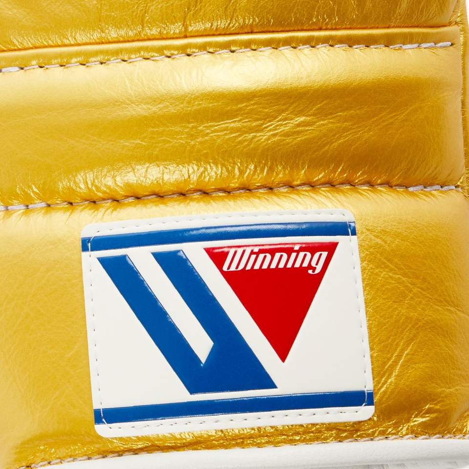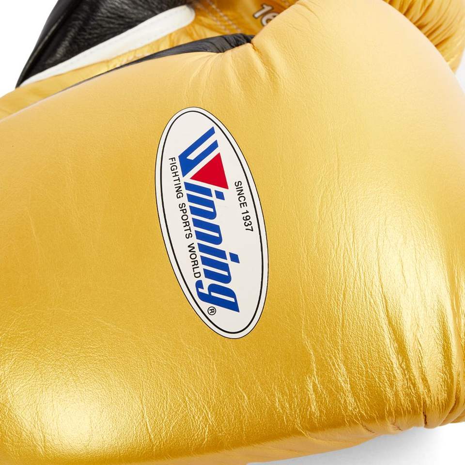 Fabricante de fábrica Guantes de boxeo ganadores dorados y negros con cordones 100% Cuero original Haga su propia marca