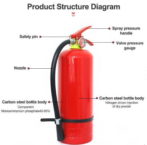 Extintor de Polvo Químico Seco ABC (DCP) de 3kg, 4kg, 5kg, 6kg, 8kg para Fabricación Industrial y Otros Usos