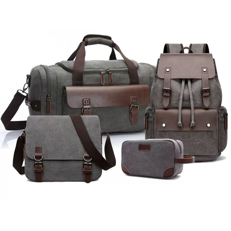 Set de Viaje Impermeable de Lona Combinado de Fábrica: Mochila, Bolso de Lona, Bandolera y Neceser 4 en 1 al por Mayor con Forro de Poliéster