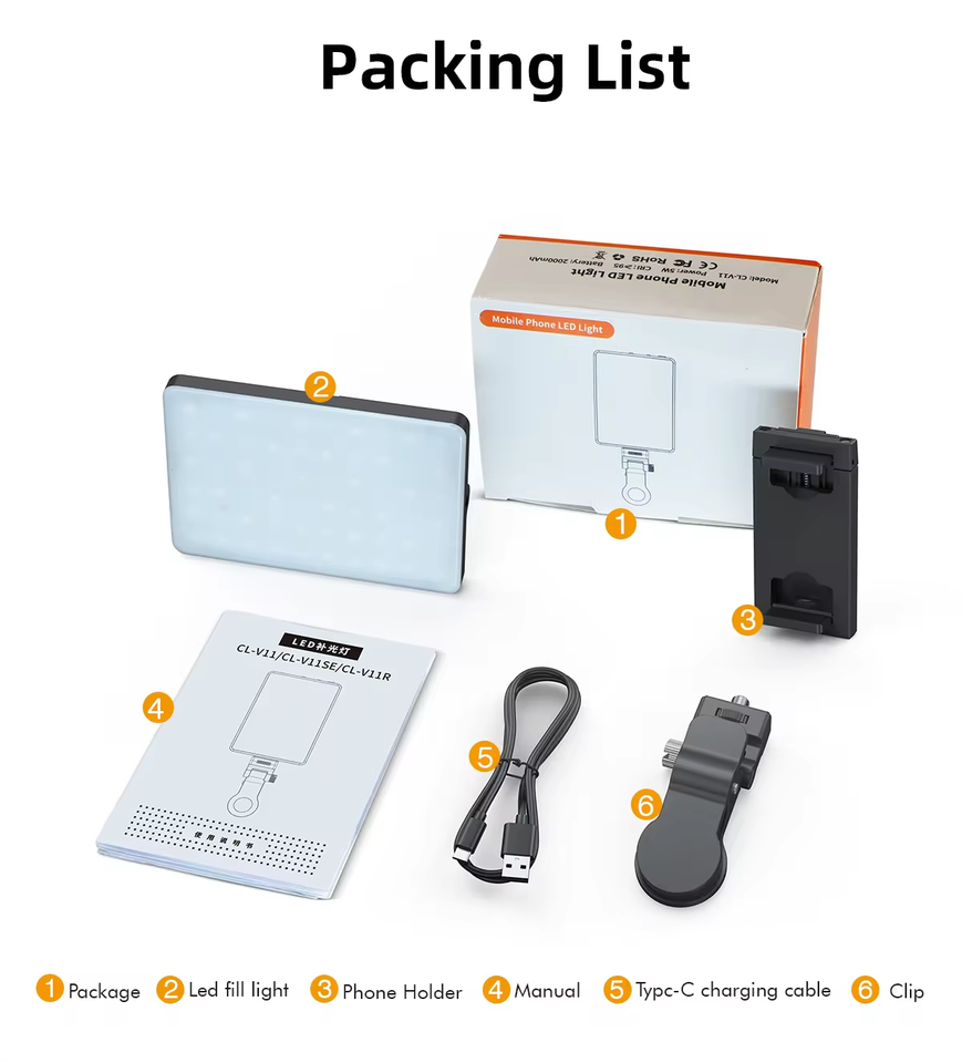 Luz de Relleno para Teléfono Móvil de Fábrica, Luz LED de Mano para Selfies en Vivo, Videoconferencias, Clip para Teléfono Celular, Flash para Selfies, Luz para Youtube