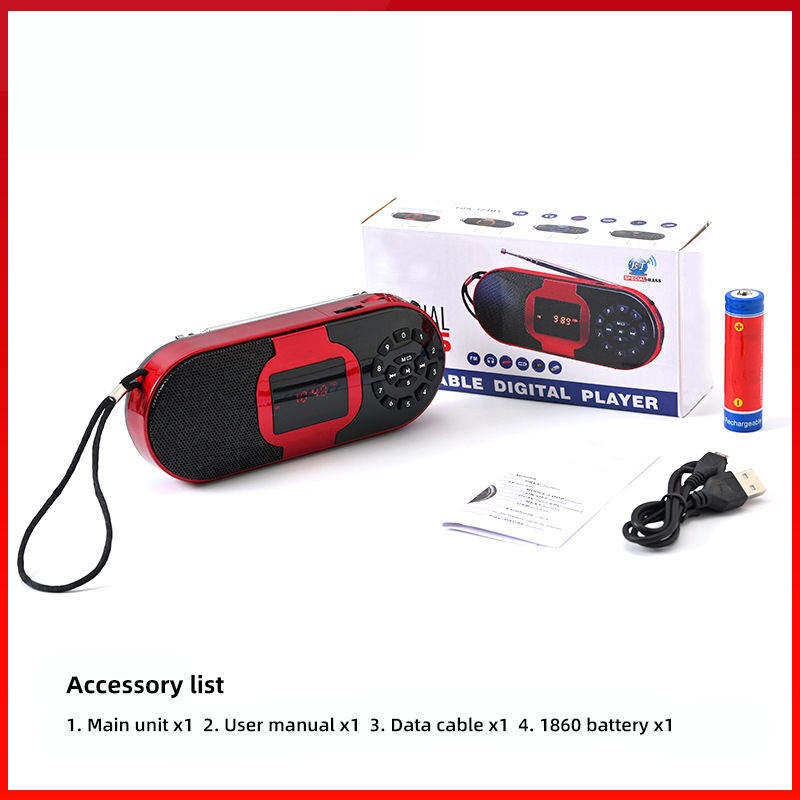 Radio FM Multifunción de Fábrica, Altavoz BT, Reproductor MP3, Ranura para Tarjeta TF, Grabación, Recargable, Dispositivo de Audio Portátil para Exteriores y Hogar