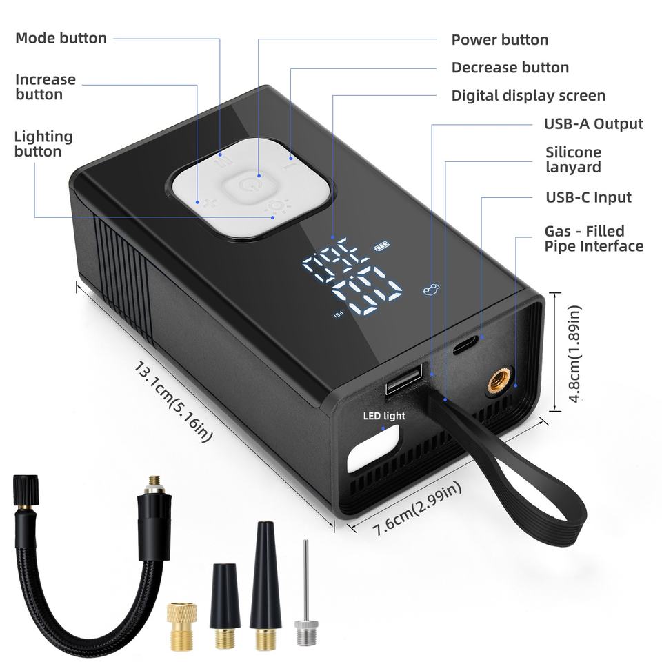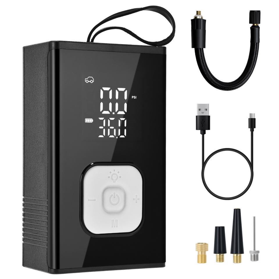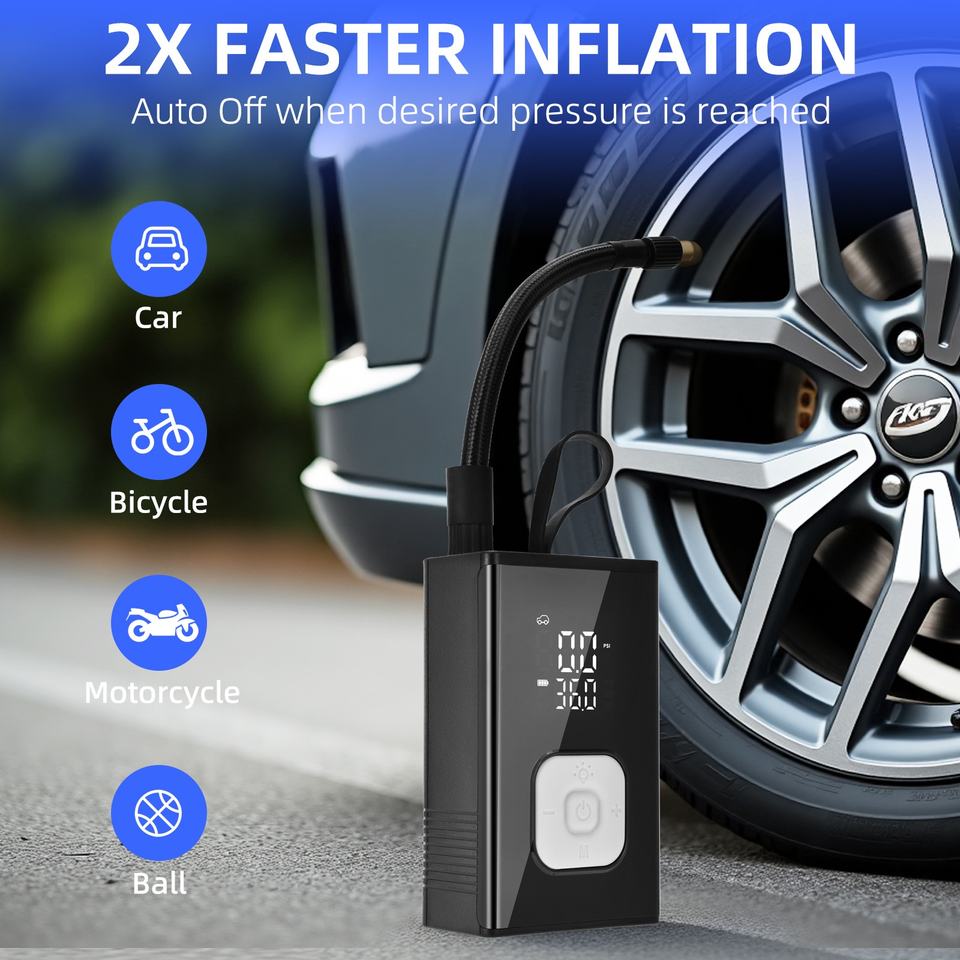 Inflador de Neumáticos para Auto Nuevo de Fábrica, Mini Compresor de Aire Inalámbrico de 150 PSI con Luz LED y Manómetro para Autos, Camiones y Bicicletas