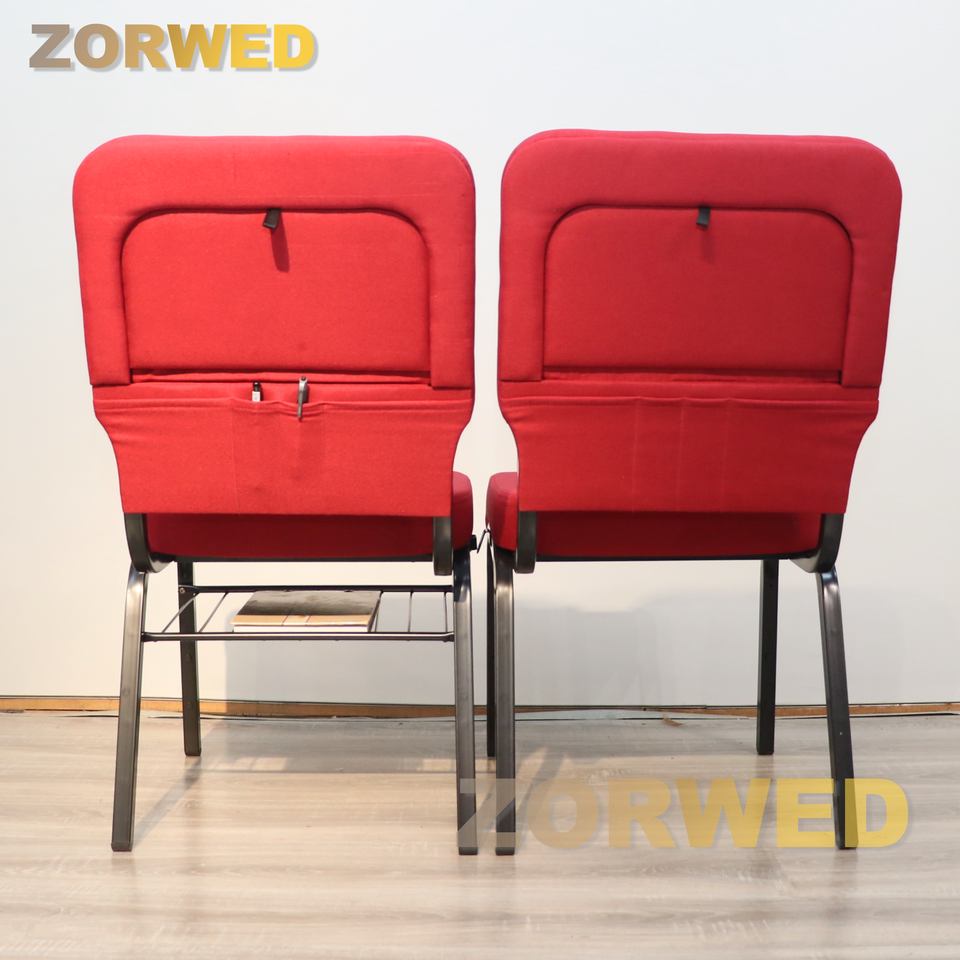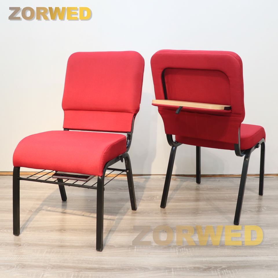 Silla de Iglesia Roja de Metal Económica para Conferencias Comerciales, Nueva de Fábrica, con Mesa Plegable en el Panel para Uso en Iglesias