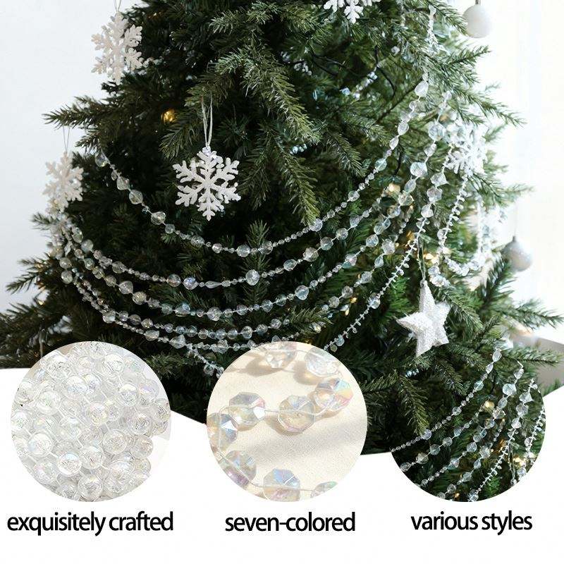 Cadena de Cuentas de Plástico Transparente de Alta Calidad, Adornos Colgantes para Árbol de Navidad, Elegantes e Impermeables