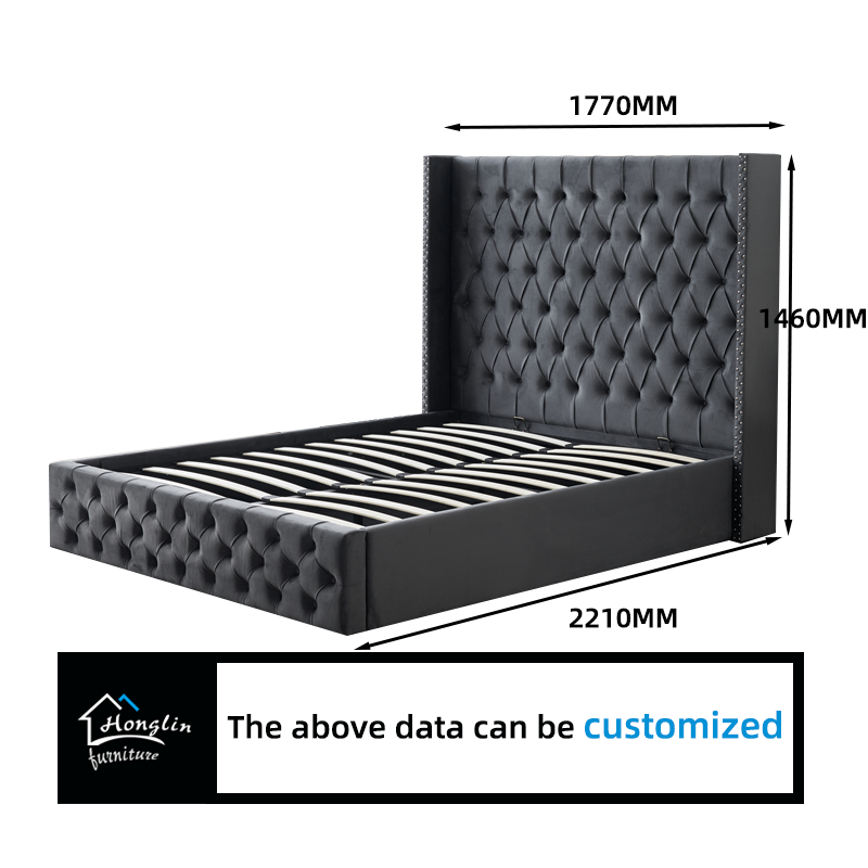 Marco de cama de almacenamiento de tamaño doble de rey Almacenamiento de terciopelo tufted debajo de la cama