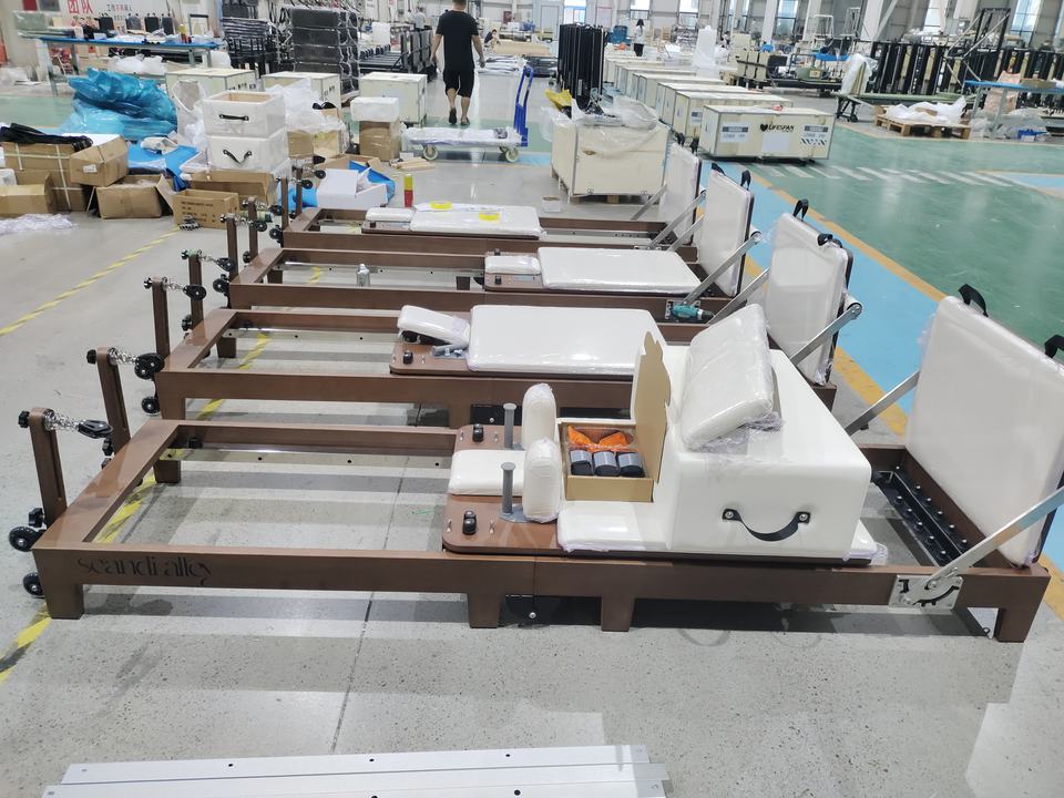 Fábrica nuevo estilo plegable color nogal madera de roble Pilates reformadores máquina equipo para hogar y estudio