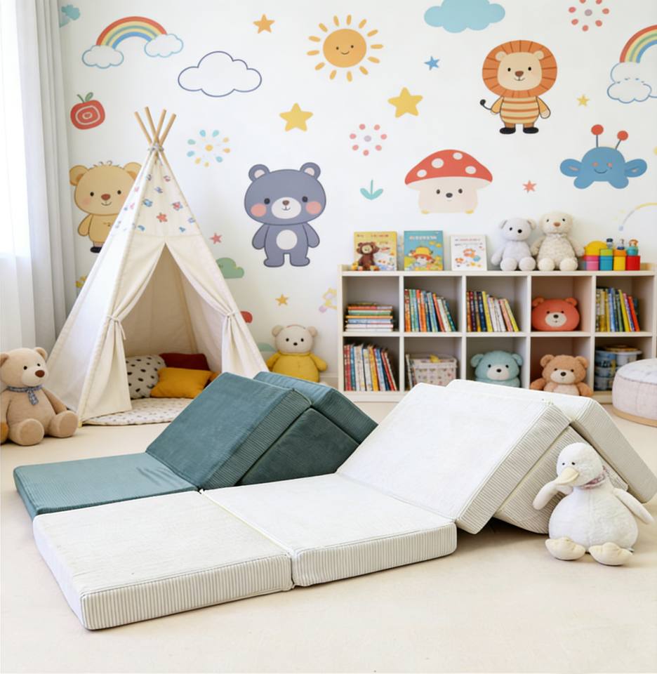 Alfombra de Juego Multifuncional para Bebés y Niños, Plegable, Portátil, de Felpa Suave, Anti-Caídas, con Cojín de Seguridad, No Tóxica, de Fábrica
