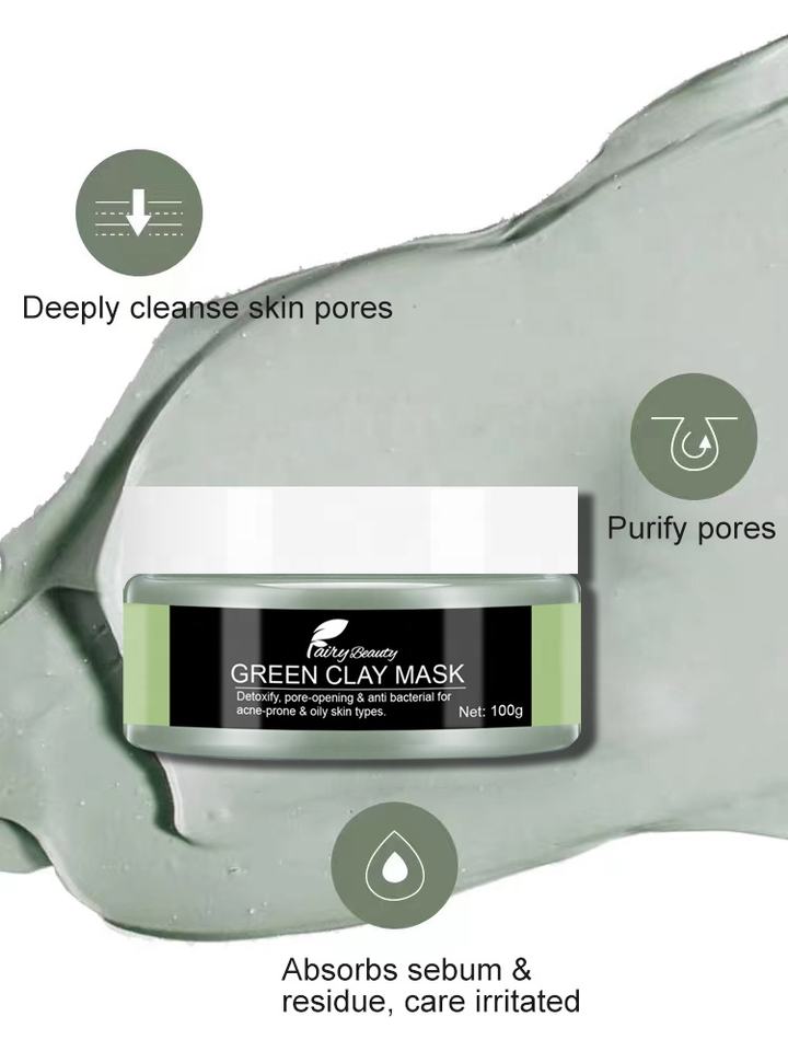 Mascarilla de arcilla verde vegana para hombre, máscara de buena calidad con control de aceite, reduce los poros, antiacné, purifica la piel, de fábrica, OEM