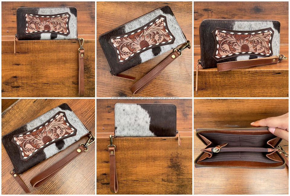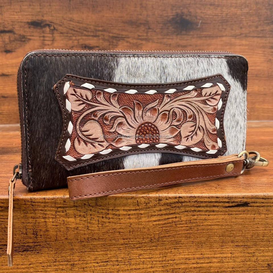 Product name:Hand Tooled Cowhide Leather Wristlet Wallet