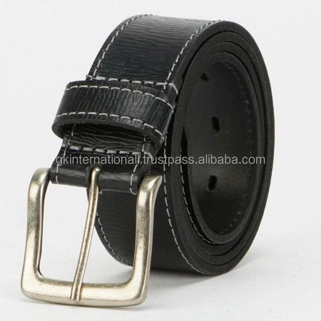 Cinturón informal de cuero para hombre, correa de alta calidad, a la moda, en todos los tamaños personalizados, con costura de borde de diseño blanco y hebilla de latón, OEM de fábrica