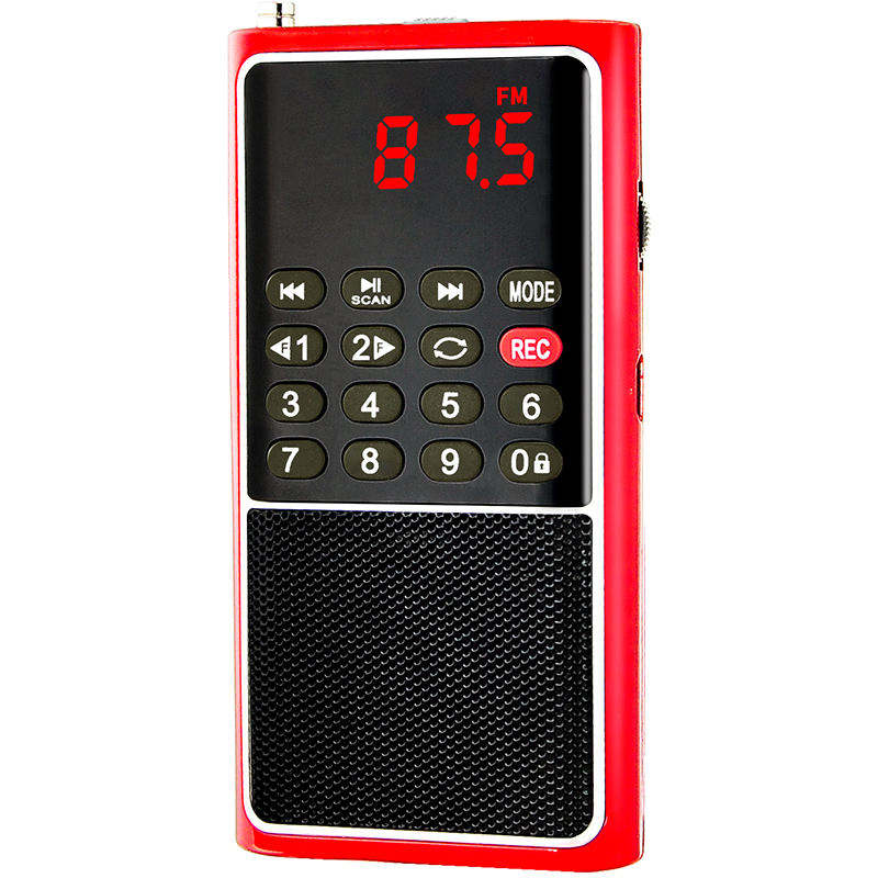 Radio FM portátil L-338 OEM de fábrica, reproductor MP3, grabadora de voz, pantalla LED, altavoz incorporado, tamaño de bolsillo, recargable por USB, de plástico.