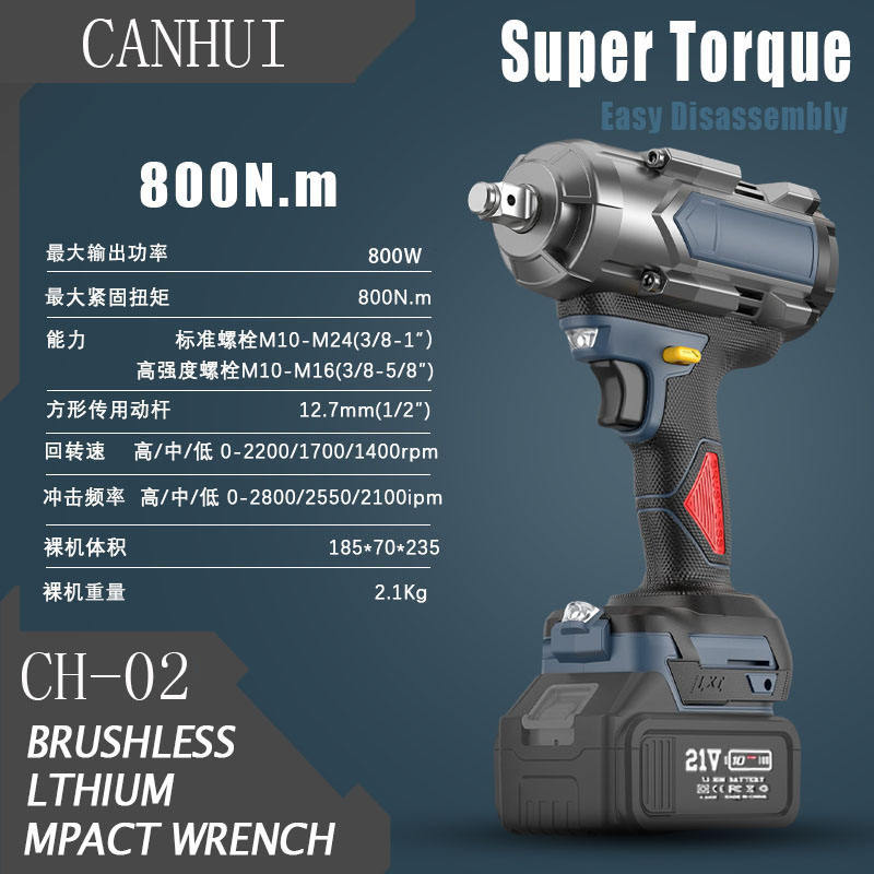 Llave de Impacto Eléctrica Inalámbrica sin Escobillas de 800 Nm con Batería de Litio Portátil y Regulación de Torque, Etiqueta OEM de Fábrica, para Reparaciones