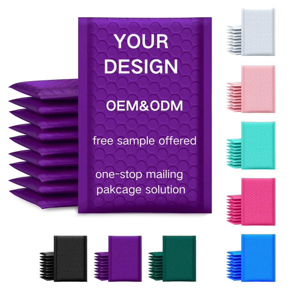 Sobres acolchados morados OEM de fábrica, bolsa de correo de polietileno, bolsa de envío de correo de burbujas ecológica con logotipo personalizado