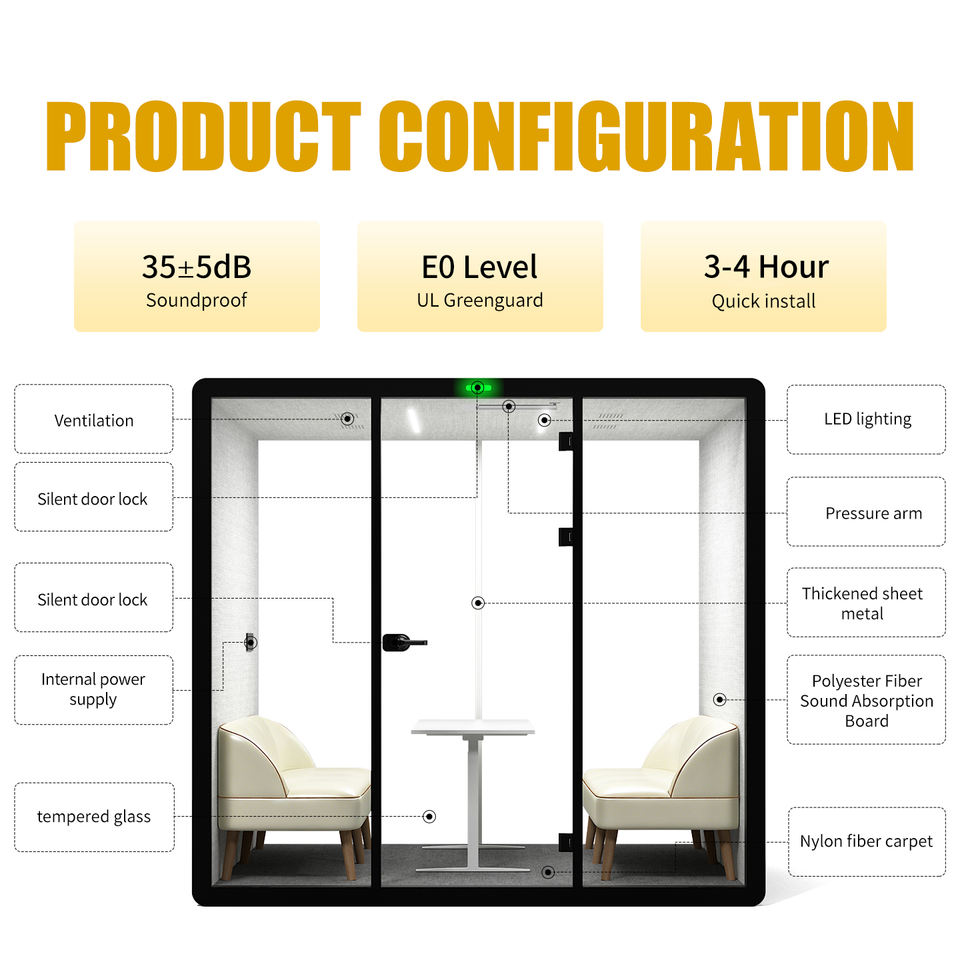 Cabinas de Trabajo Acústicas Insonorizadas para 2 Personas, Cabina de Reuniones Portátil en Venta