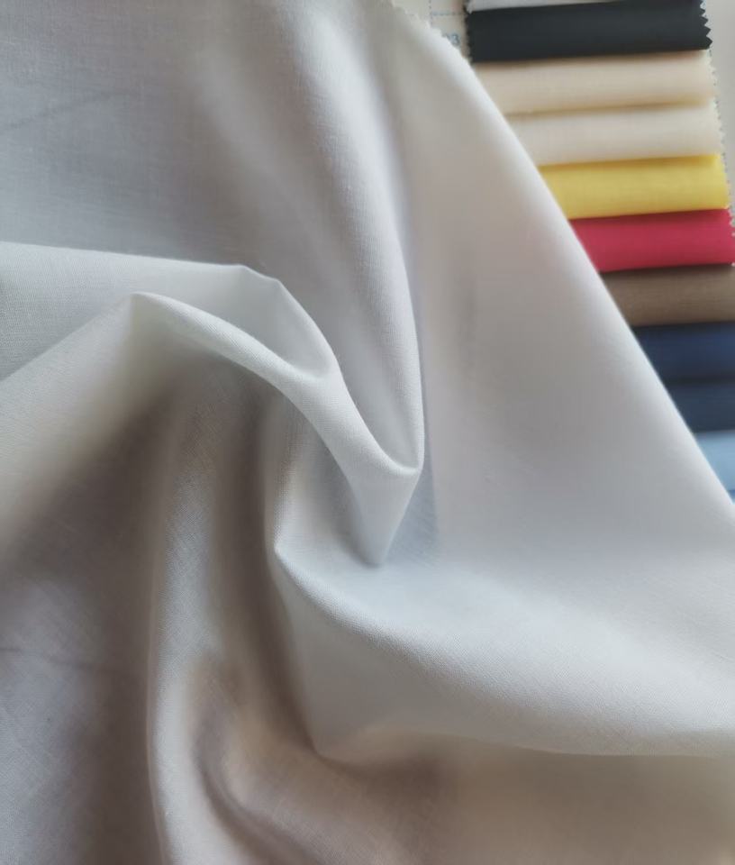 Tela Popelina T/C 80% Poliéster 20% Algodón, 45*45 96*72, Ligera, 95 GSM, Tejido Liso para Forro de Vestidos y Camisas, Venta Directa de Fábrica