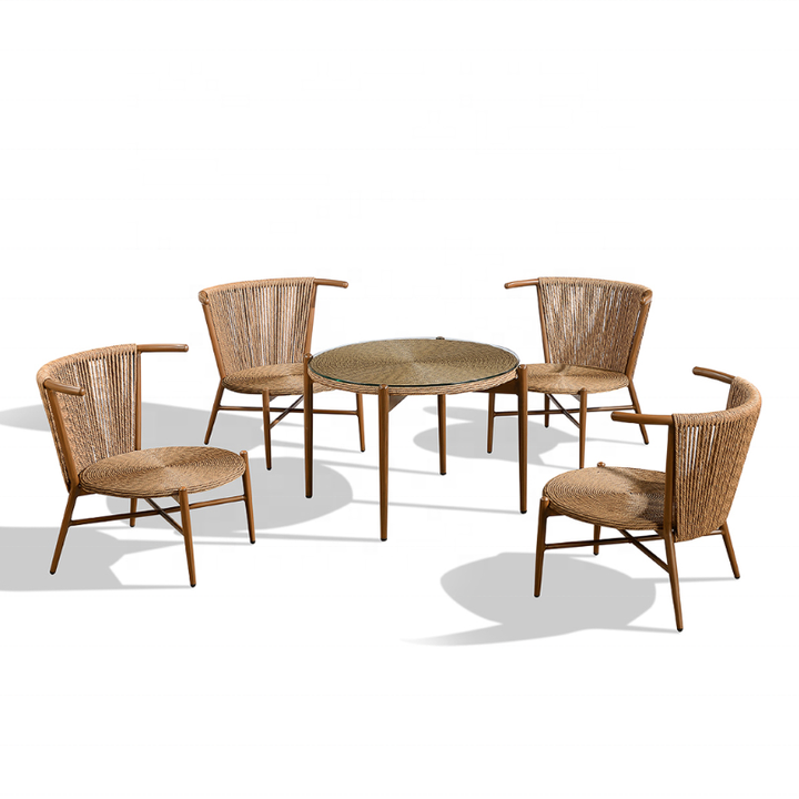 Conjunto de sillas de mimbre para jardín, muebles de exterior de mimbre con cuerda de aluminio, venta directa de fábrica