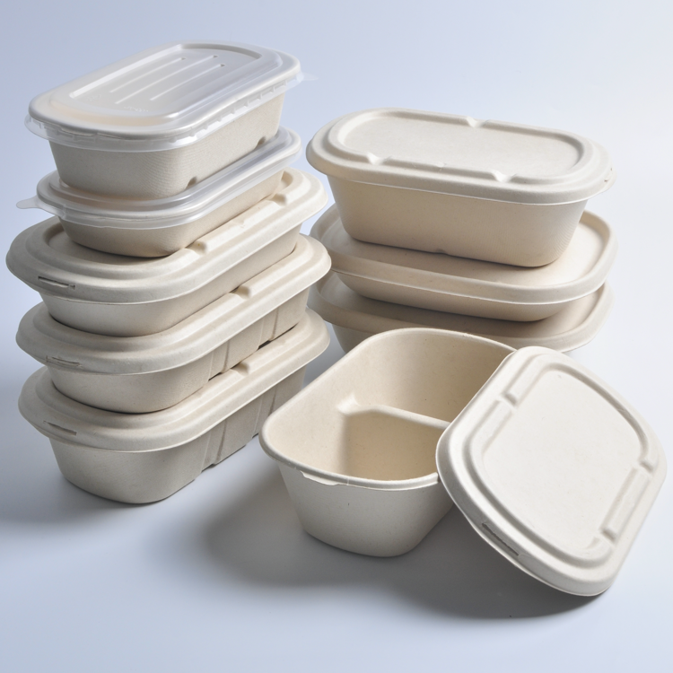 Contenedor desechable de pulpa de bagazo para comida para llevar con tapa, de venta directa de fábrica