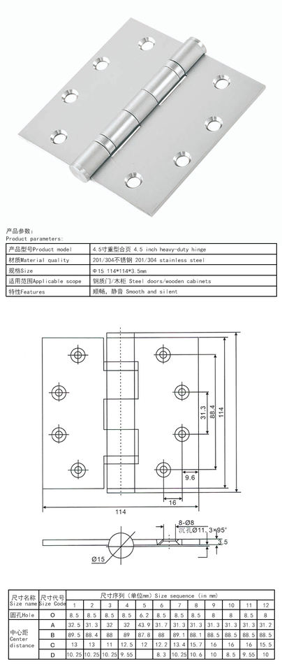 Stainless Steel, 4.5 Inch Heavy-duty hingeTipo