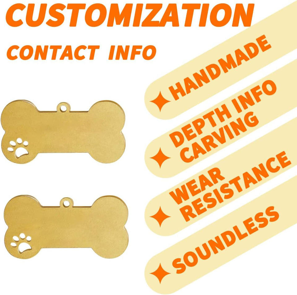 Etiquetas de Identificación para Mascotas en Blanco de Fábrica, Personalizables, Multicolores, de Acero Inoxidable, con Grabado Láser UV, Forma de Hueso