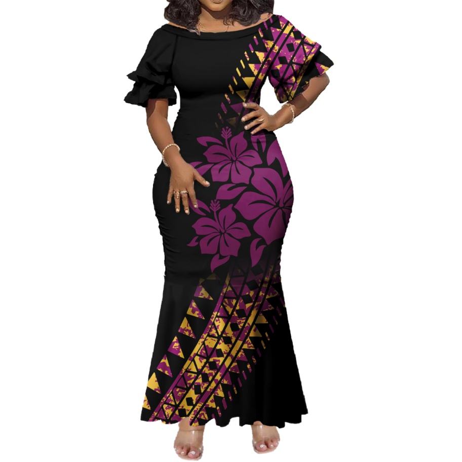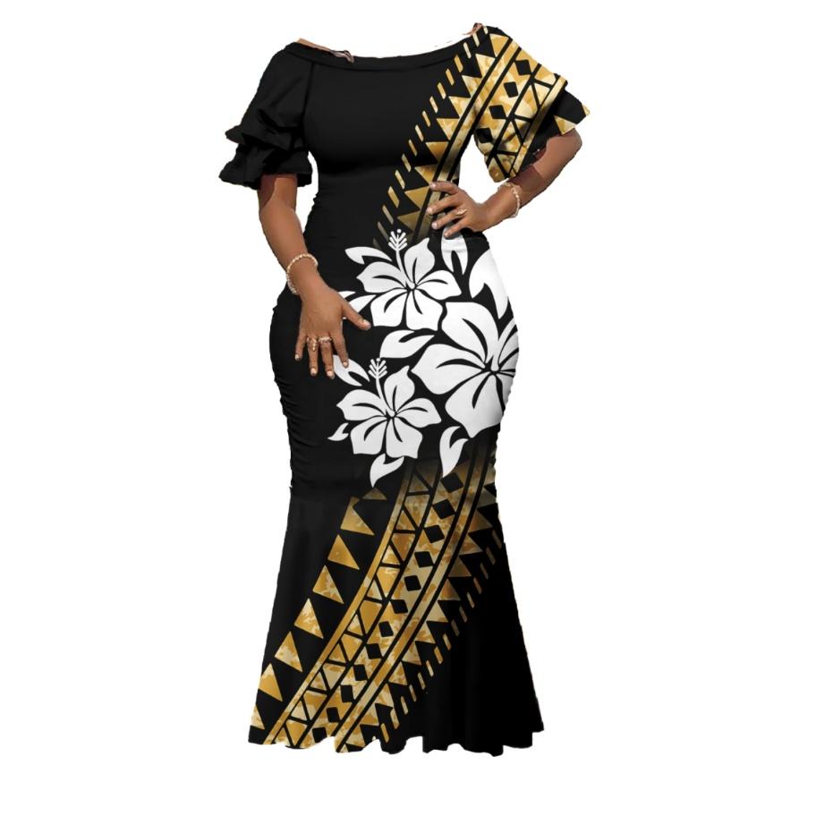 Vestido Maxi de Fiesta para Mujer, Estilo Sirena, Talla Grande, Diseño Tribal Polinesio, Hombros Descubiertos, Sexy, para Verano, Venta Directa de Fábrica