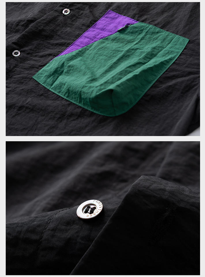 Camisa Casual de Manga Larga con Bolsillo en el Pecho y Bloques de Color de Moda, Cuello Camisero Holgado para Exteriores, Blusa Masculina