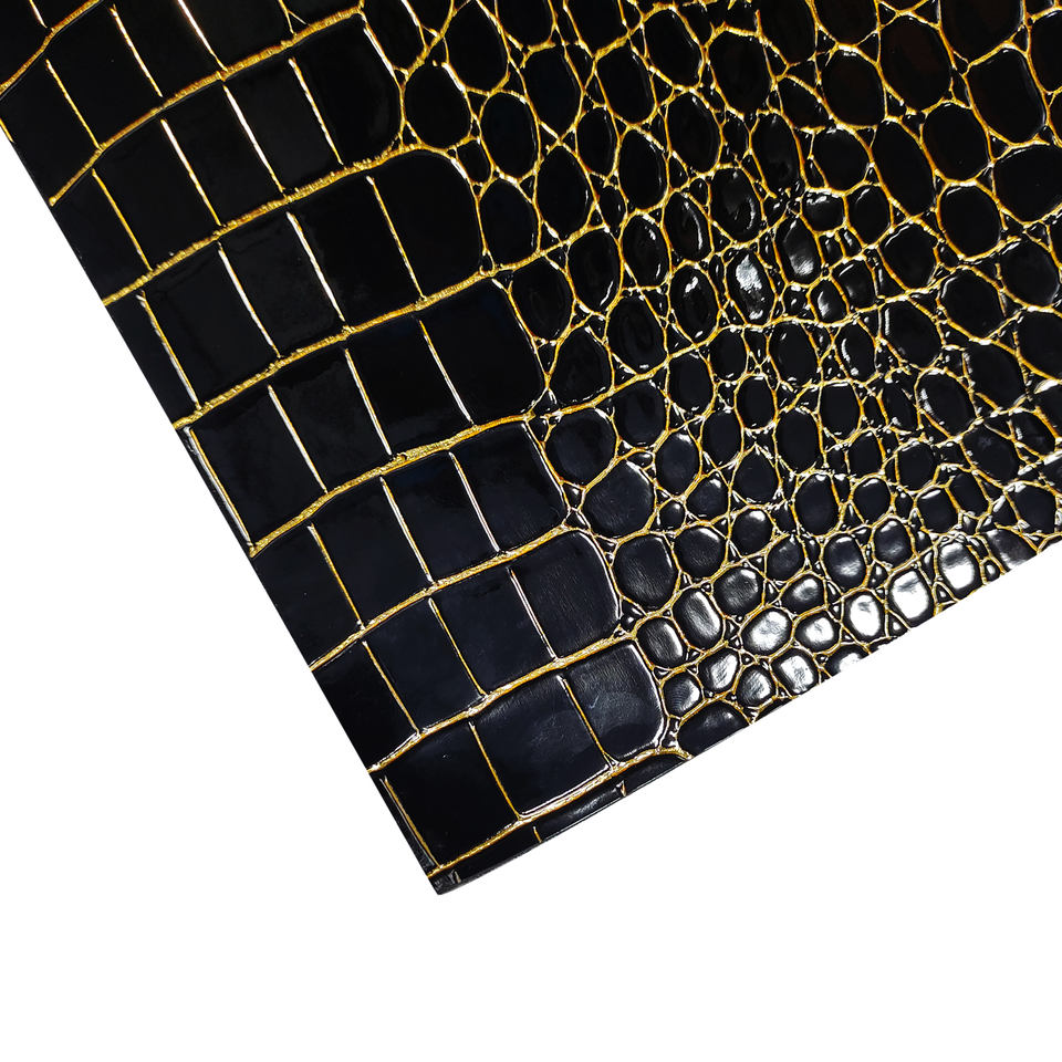 Producto de cuero sintético con patrón de cocodrilo de línea dorada de salida de fábrica para bolso, Maleta, joyero, ropa