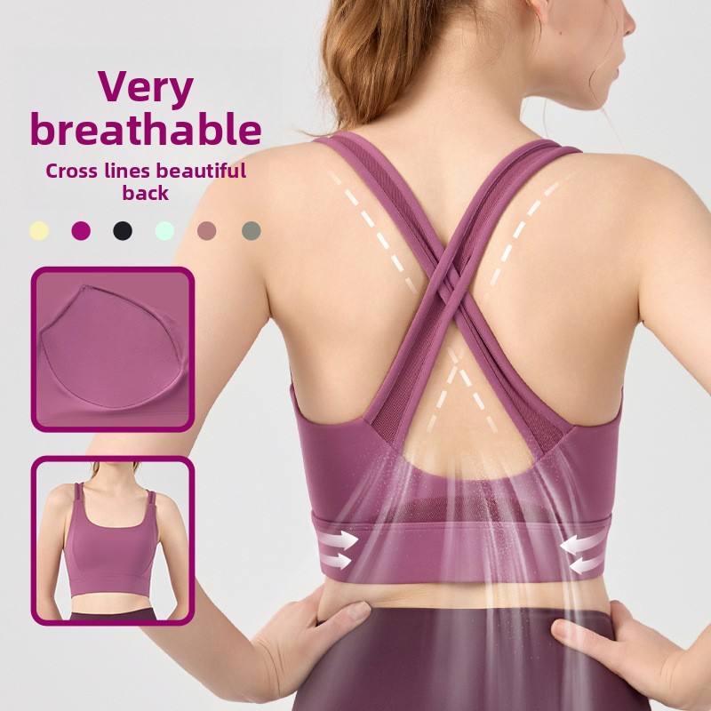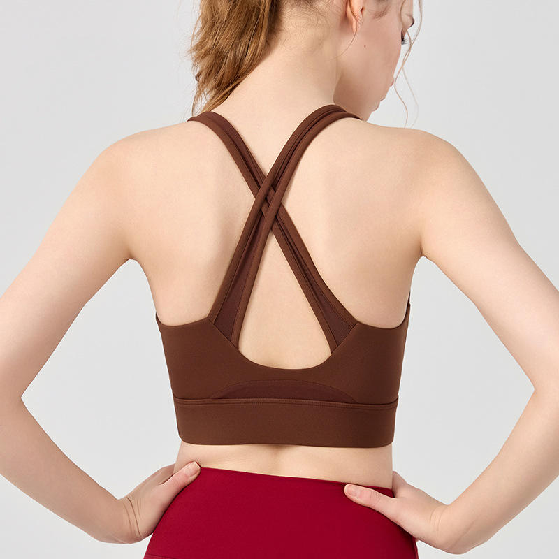 Sujetador deportivo de alta intensidad transpirable y ajustable para mujer, con tirantes de elastano/nailon, top de yoga y fitness, de outlet de fábrica.