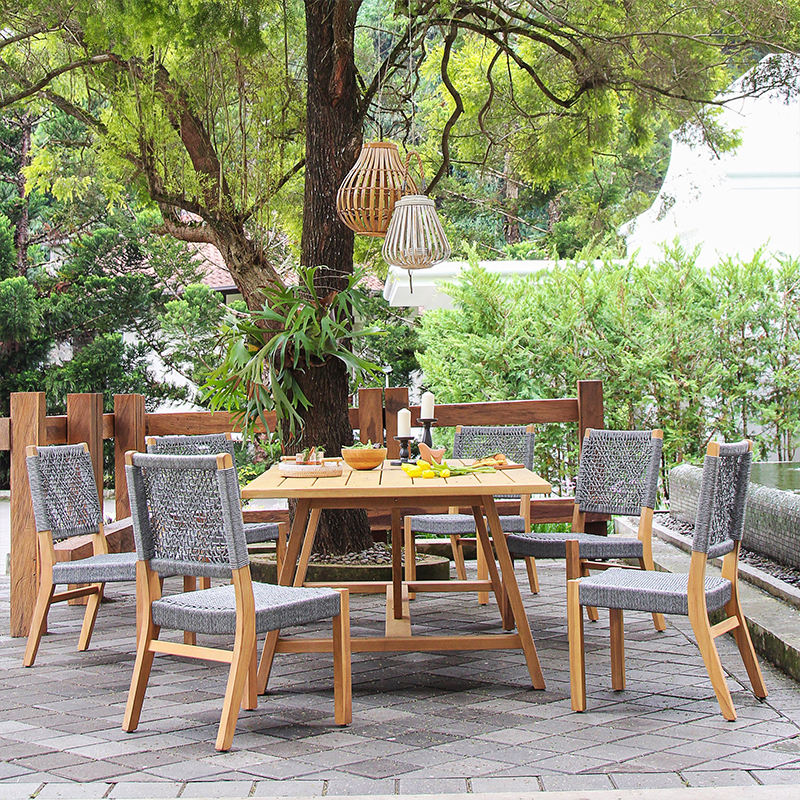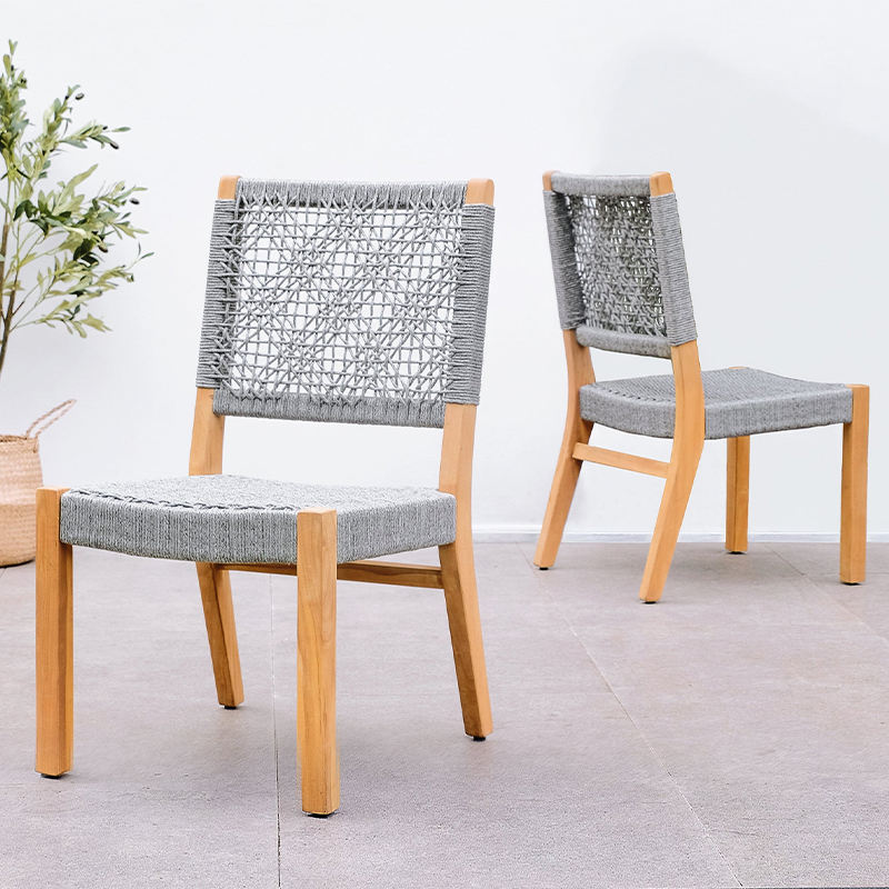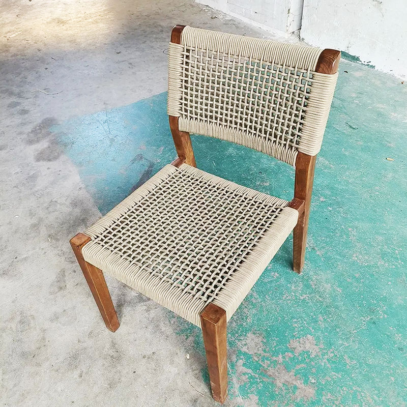 Factory outlet Hotel jardín barato PE ratán tejido sillón teca comedor silla al aire libre banquete cuerda silla