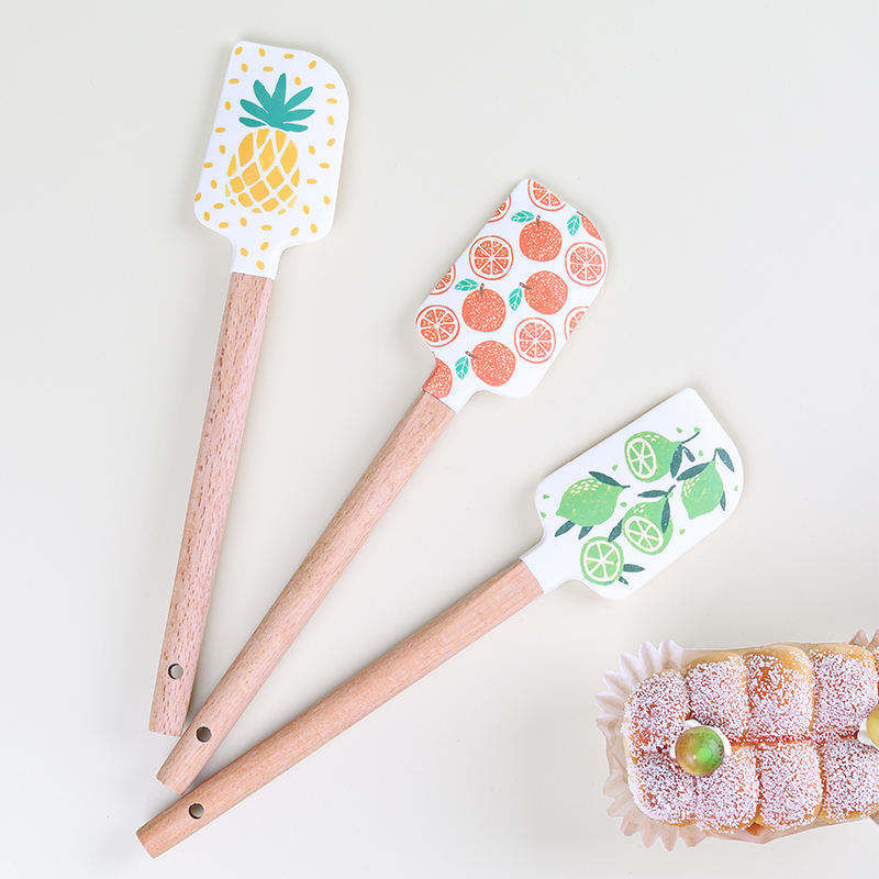 Factory Outlet Utensilio de cocina Raspador de mango de madera resistente al calor con espátula de silicona para hornear
